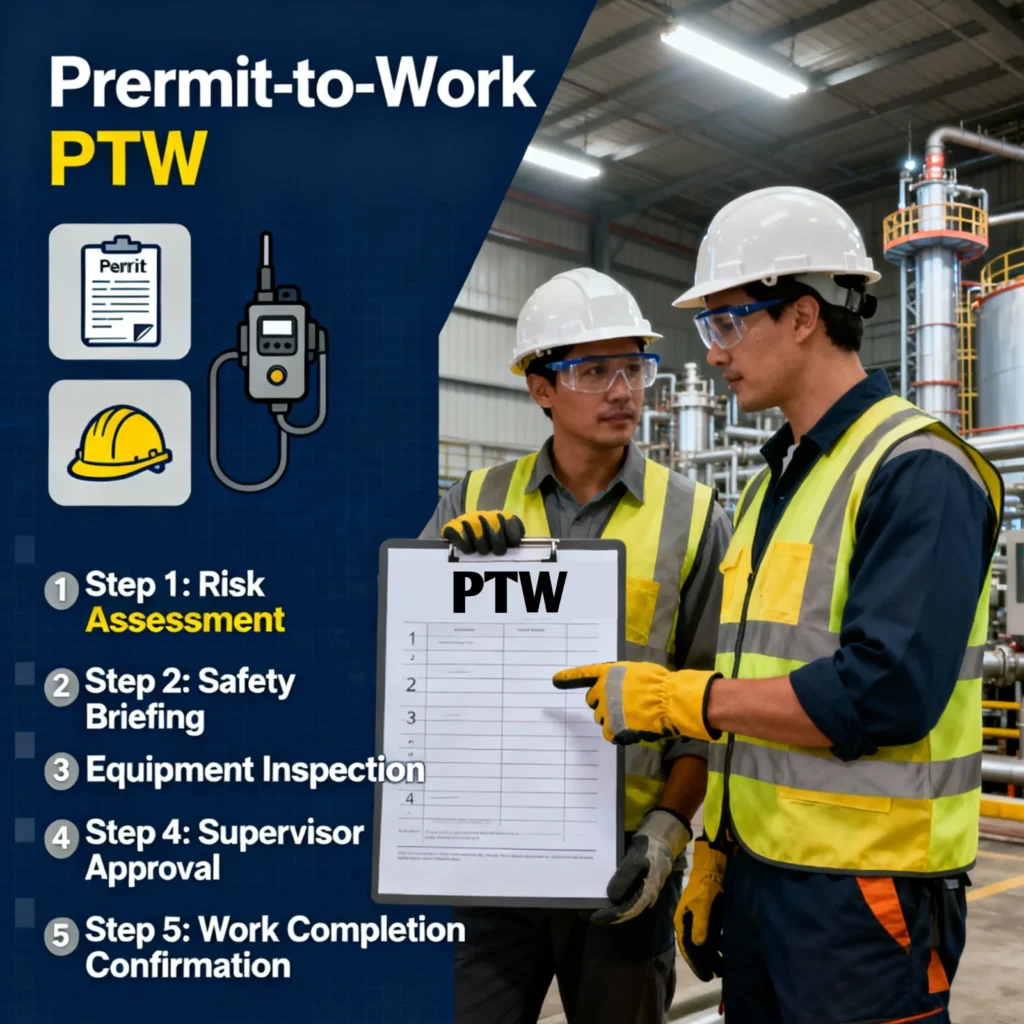 A Permit-to-Work system is a written safety authorization procedure/document. It gives official permission for performing work—such as construction, repairs, inspection, or maintenance—in places with higher risks, like where flammable or dangerous chemicals are handled, or where special hazards exist. PTW acts like a “safety contract” between all parties involved in hazardous work.